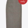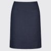 Lemná sukně spadající těsně nad kolena, s rozparkem uprostřed a skrytým zipem uprostřed zadního dílu se 2 předními kapsami.